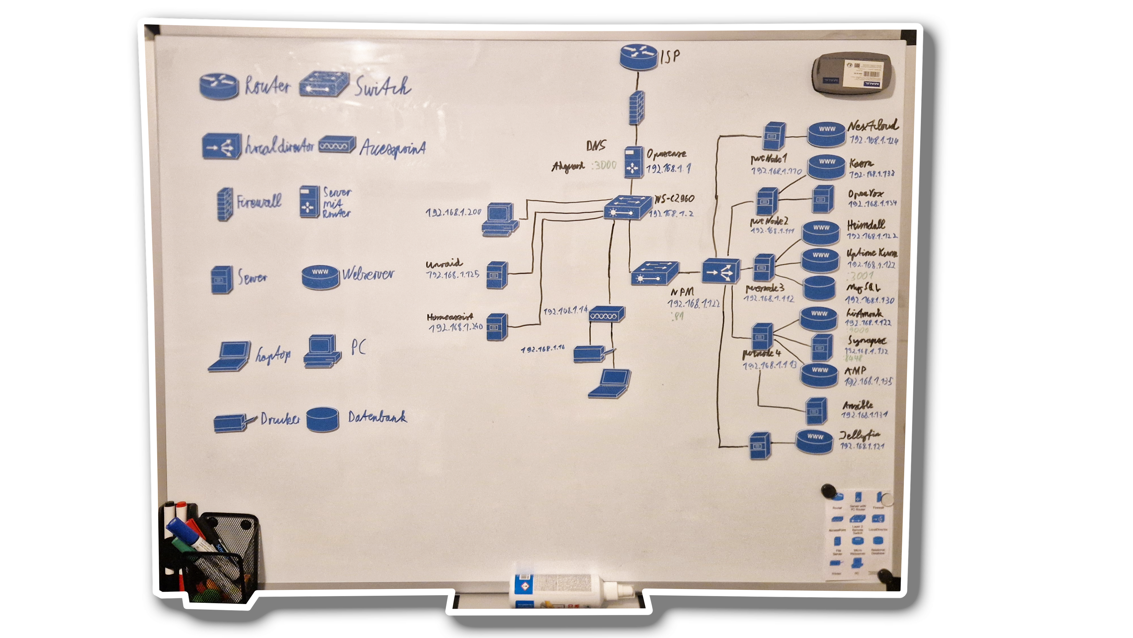 Die Idee, die Netzwerksymbole auf das Whiteboard zu bringen, entstand aus dem eigenen Wunsch, mein Homelab zu visualisieren. Dann dachte ich, es wäre doch schön, diese Möglichkeit zu teilen.
